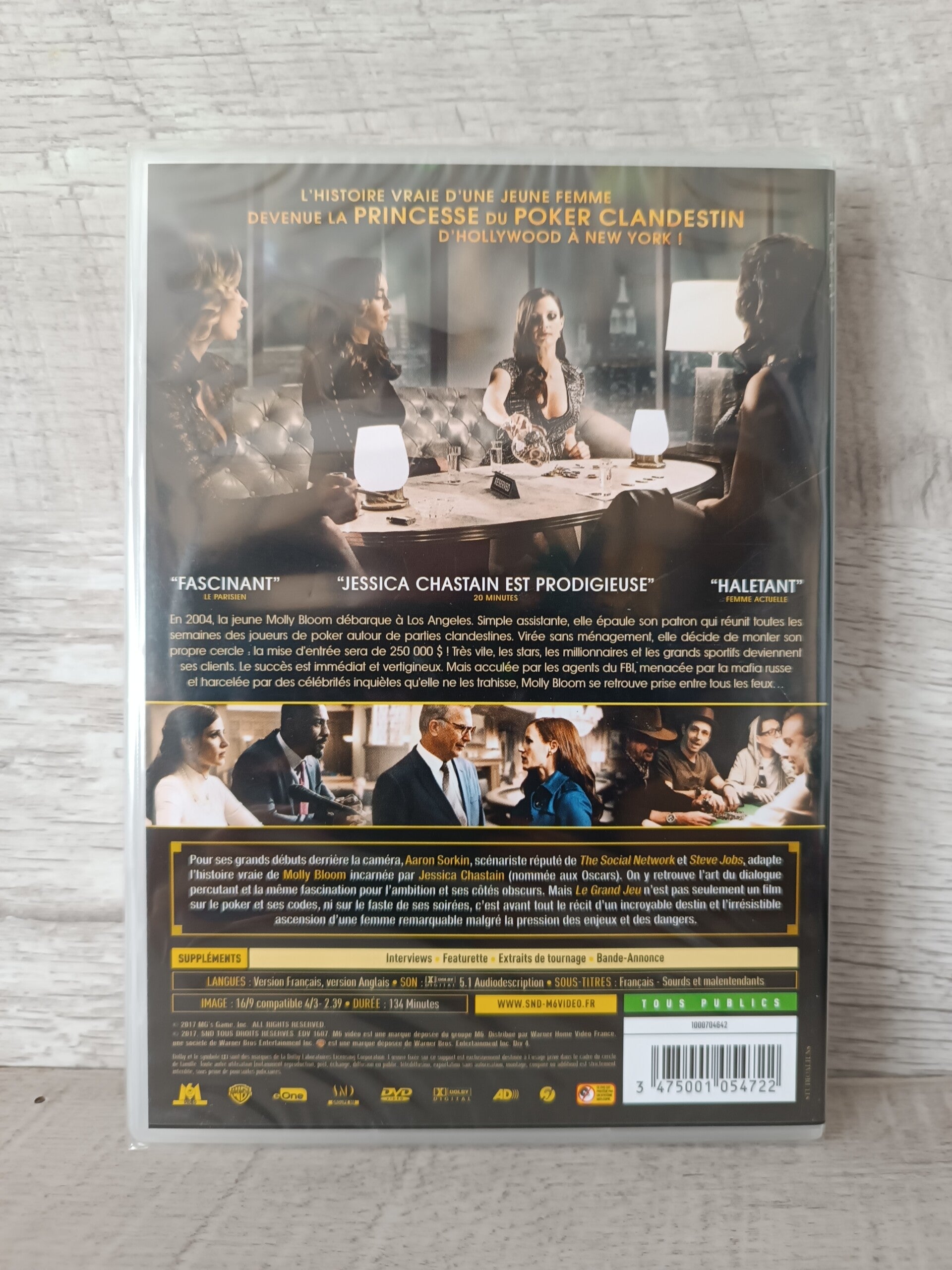 En 2004, la jeune Molly Bloom débarque à Los Angeles. Simple assistante, elle épaule son patron qui réunit toutes les semaines des joueurs de poker autour de parties clandestines. Virée sans ménagement, elle décide de monter son propre cercle, la mise d'entrée sera de 250000$ ...